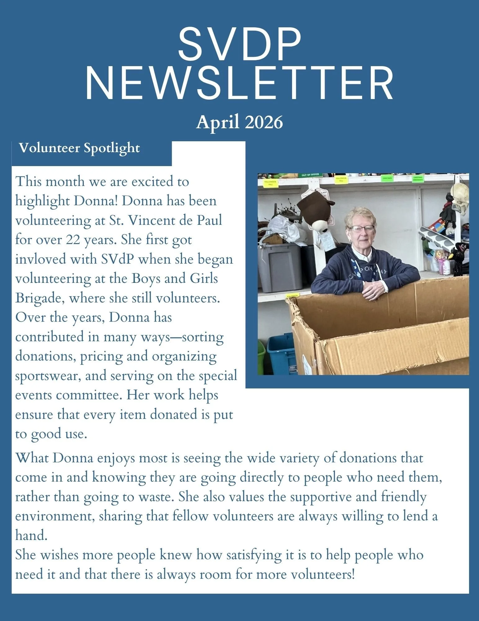 On this page our newsletter will keep our community updated on programs, volunteer opportunities, and store updates.